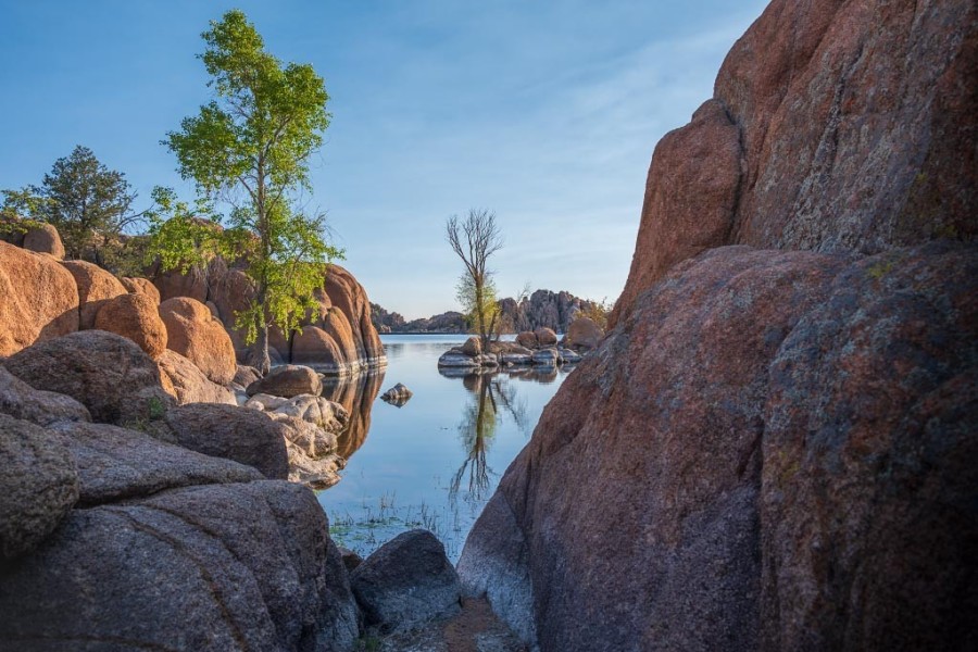 While in Prescott AZ for Mother's Day weekend attending my sister-in-law's PhD graduation, I had time for a few photo sessions at this nearby attraction. The lake is one of two reservoirs at the Granite Dells, formed in the early 1900s when a dam was built on Granite Creek.