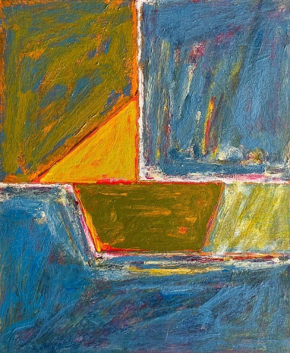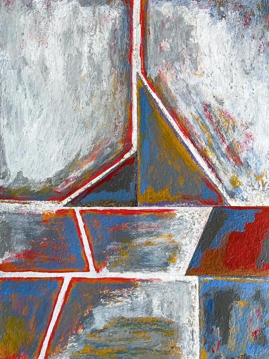 While photography and digital art have been added as creative pursuits in recent years, my roots are in "analog" art, and there is still nothing quite like working with traditional media. Current work is a renewal and remix of themes explored during my graduate studies in art in the early 1980s. Content is reduced to simple geometric shapes in tension with each other and the fluid space they inhabit. Success lies in eliciting an emotional response through the expressiveness of colors, shapes, and textures. As a process, it’s about developing my creative awareness, as intimated by the Agnes Martin quote.