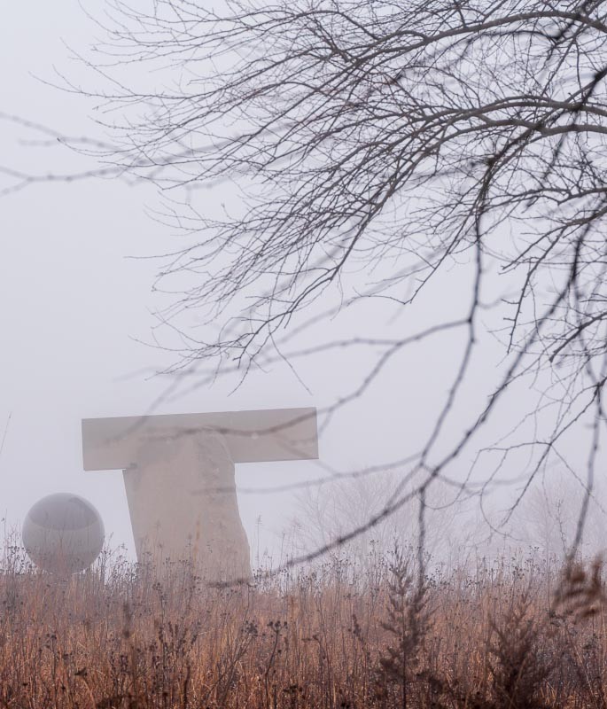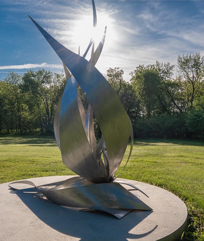 Meadowbrook Park is one of many wonderful recreation areas located close to where I live here in central Illinois, and a favorite due to the inclusion of the Wandell Sculpture Garden. The sculptures have been a "focus" of my photography attention ever since my first visit there, and provide a great example of utilizing local sites to develop your skills through repetition. The galleries below that highlight selected works prove the value of repeated visits to capture subject matter from different perspectives and across changing conditions (seasons, times of day, etc.). Therefore, this space will continue to evolve as I continue my walks through the park. Many thanks to the artists represented here for permission to use their work as part of mine.