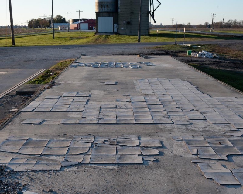 Yesterday while returning from a day trip up north I swung by the location outside a small town where the bed of decayed linoleum tiles used as source images for the TileScapes series is located (shown below left). I had not been by there since taking some shots this past winter to capture the tiles frozen in ice and snow (example below right).