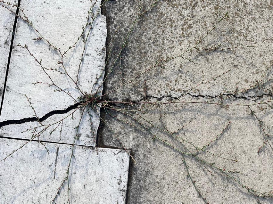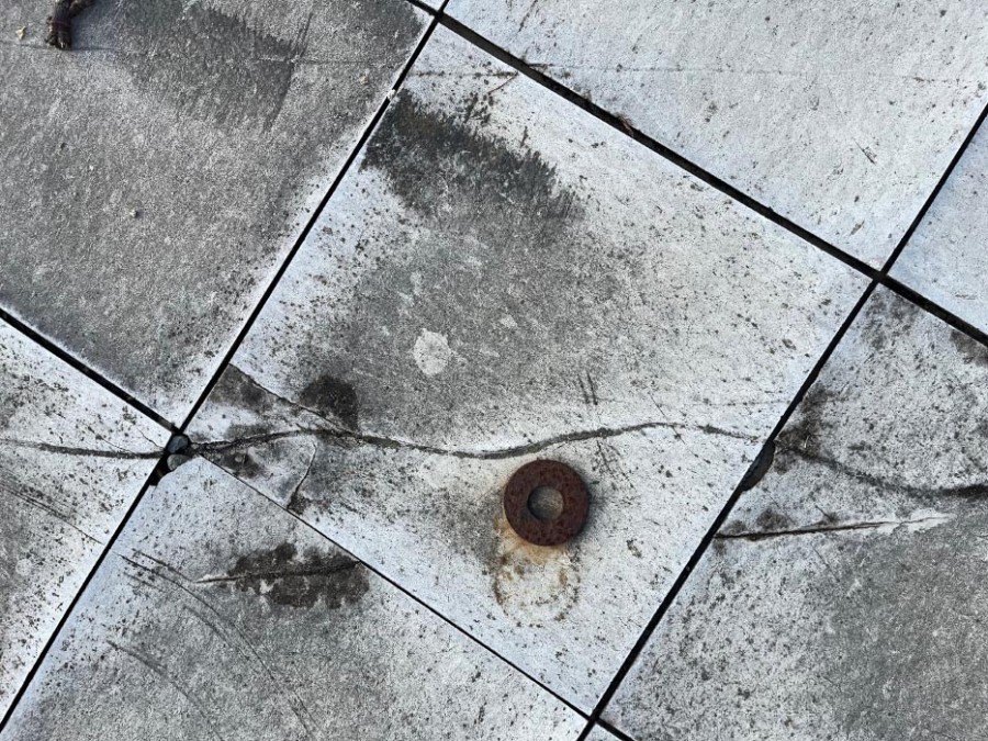 Nothing much seemed to have changed except some additional erosion of the tiles, and I was thinking there may be no need to come back here again - it struck me there's only so much you can do with this, and I already have a ton of shots from previous visits that I have yet to work with. However, since I was there, why not take a few more for the heck of it? This led to a quick walk around with my phone, and this time, instead of capturing the tiles at an angle to simulate 3D landscapes, I did some direct overhead shots reminiscent of aerial shots taken from a plane. The focus becomes more on the 2D compositional aspects of line, texture, and positive vs. negative space.