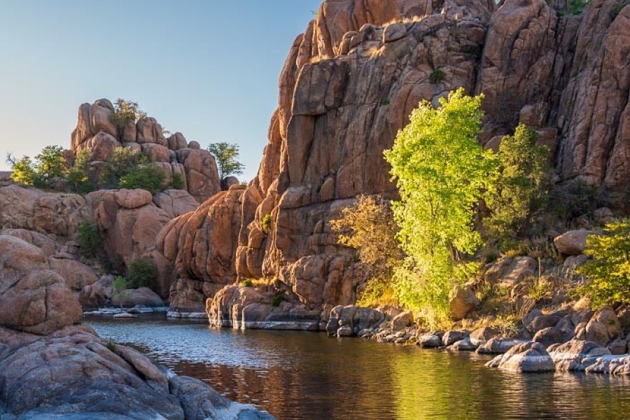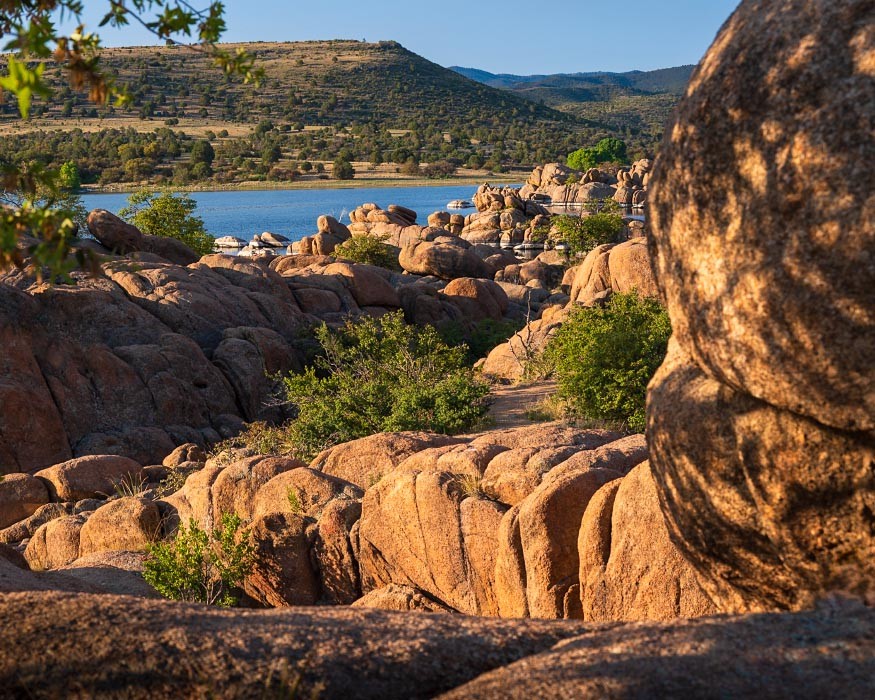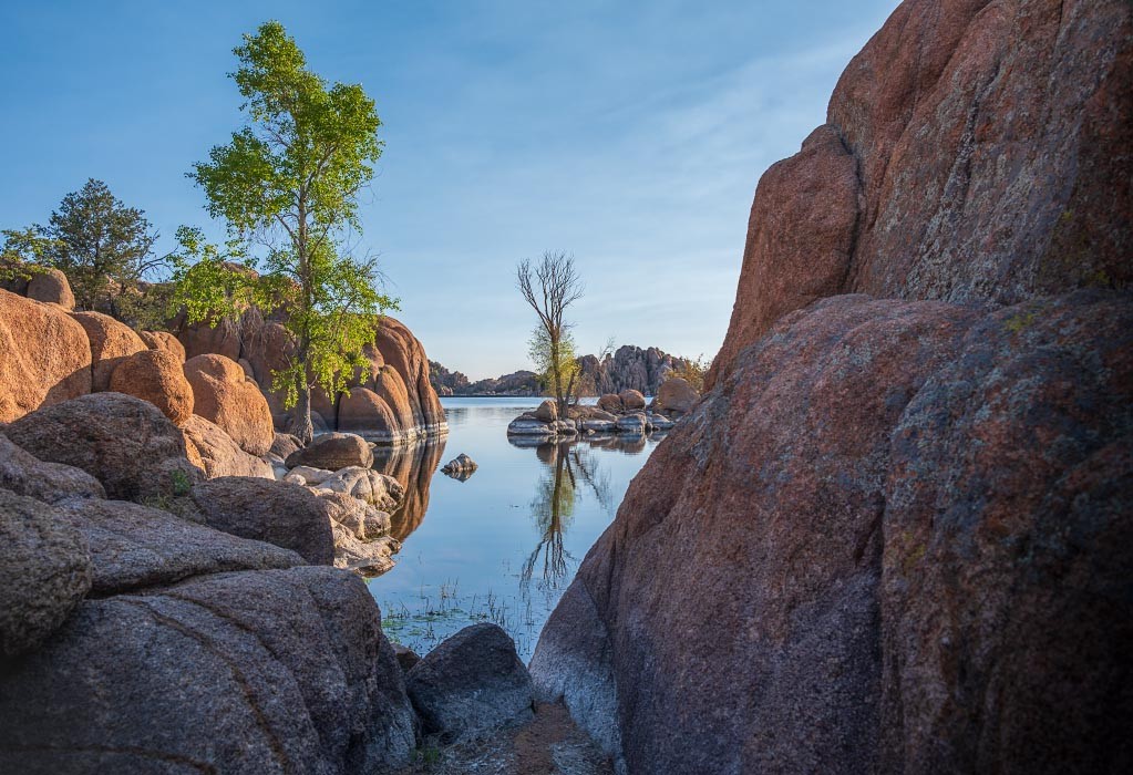 While in Prescott AZ for Mother's Day weekend attending my sister-in-law's PhD graduation, I had time for a few photo sessions at this nearby attraction. The lake is one of two reservoirs at the Granite Dells, formed in the early 1900s when a dam was built on Granite Creek.