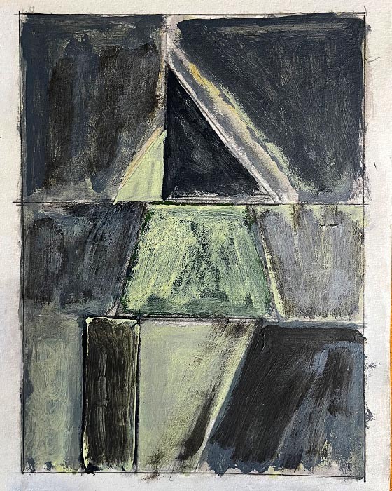 While photography and digital art have been added as creative pursuits in recent years, my roots are in "analog" art, and there is still nothing quite like working with traditional media. Current work is a renewal and remix of themes explored during my graduate studies in art in the early 1980s. Content is reduced to simple geometric shapes in tension with each other and the fluid space they inhabit. Success lies in eliciting an emotional response through the expressiveness of colors, shapes, and textures. As a process, it’s about developing my creative awareness, as intimated by the Agnes Martin quote.