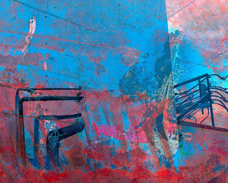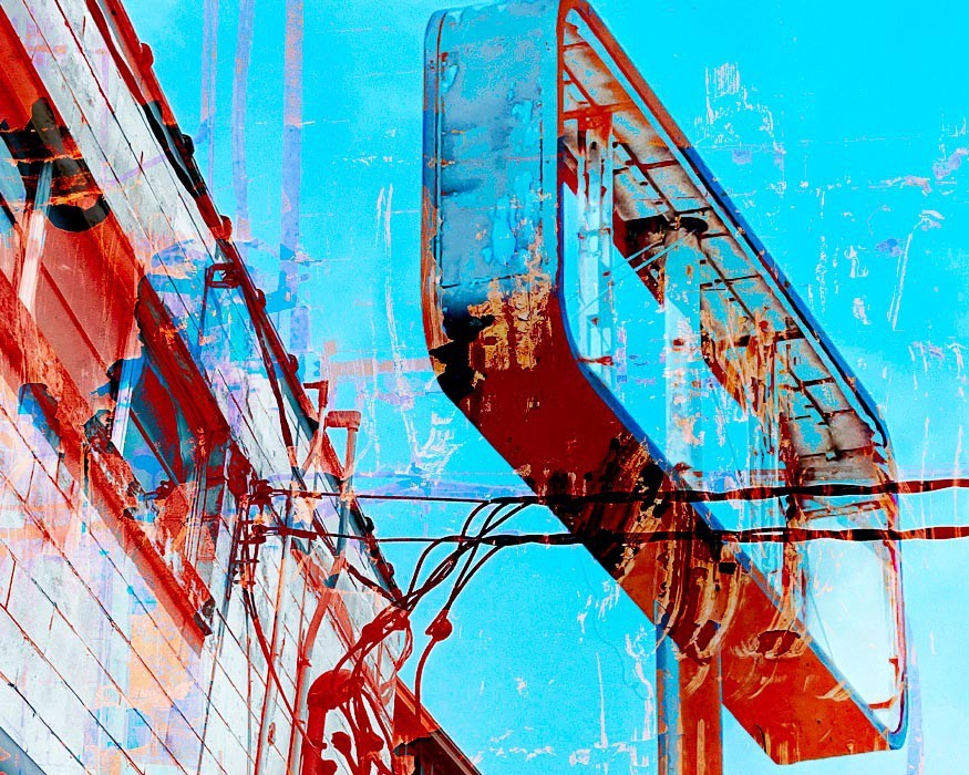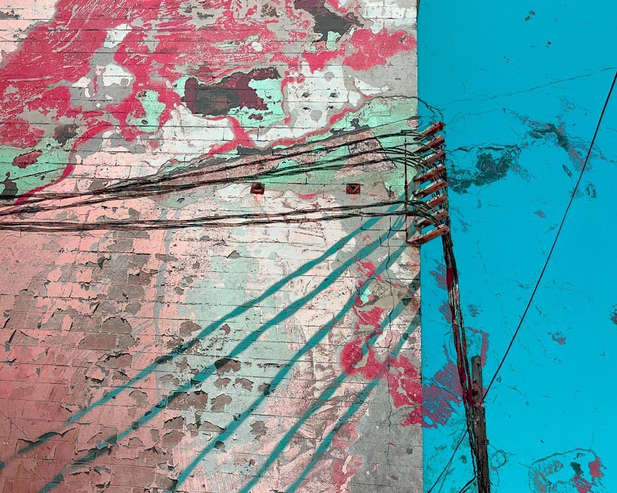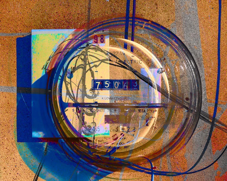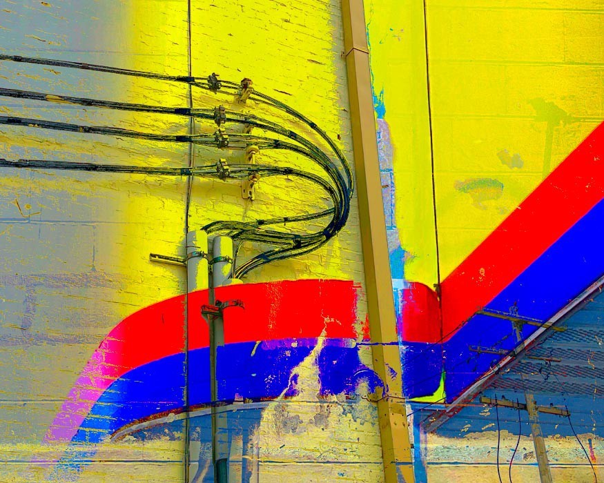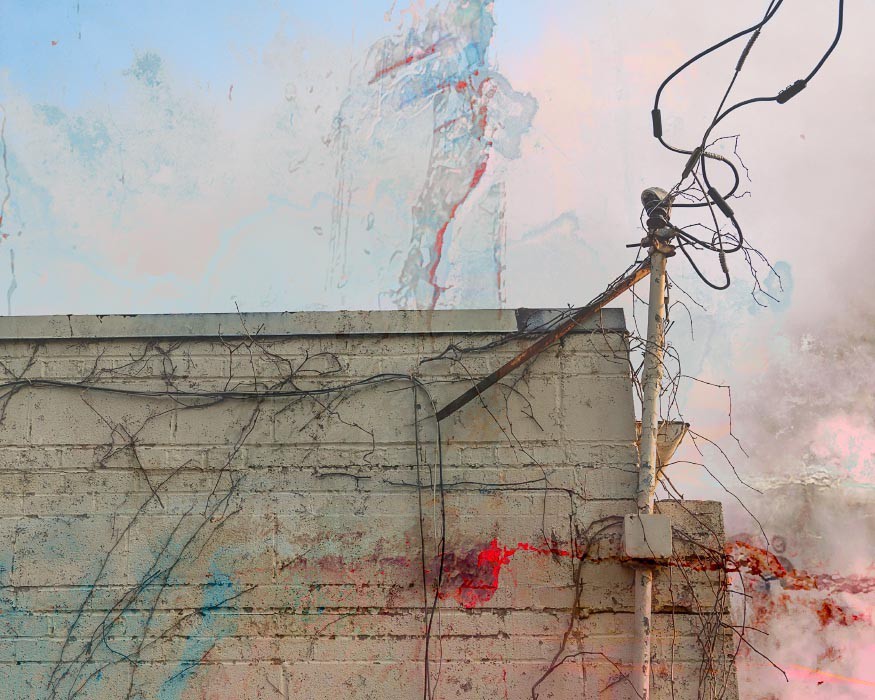 Electrical wires, poles, transformers, and other components that make up our power grids are everywhere around us, so common that it may come as a "shock" to use them as subject matter for artwork. For me though, tapping into the linearity of the wires and the opportunity to visually "charge" the works with texture and oversaturated colors became apparent. The somewhat apocalyptic effect of this mashup series as a whole also reflects the current and future shock of climate change - read on below for more on that.