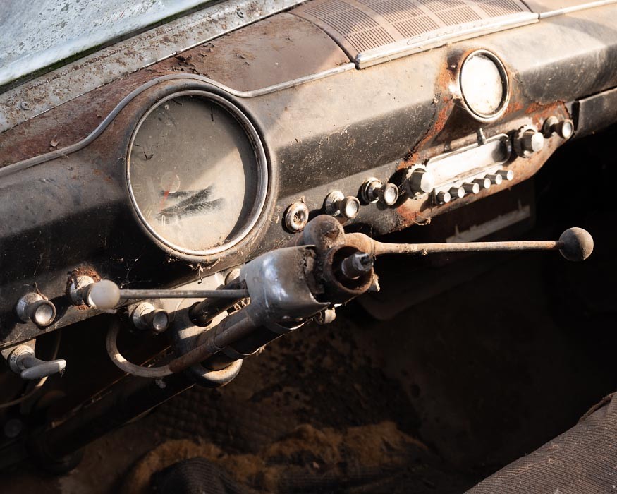 Being a commercial enterprise, FLAP was better organized and maintained and organized than Modoc, with cars neatly arranged in rows side-by-side, and minimal weed growth around them. I was better able to capture entire vehicles and vehicle groupings, as well as a variety of details and paint/rust/glass patterns. It was a bit overwhelming in terms of the number of cars, but that's a good problem to have, and by the end of my trip I had learned to quickly scan for the types of things I was looking for. The greater amount of cars also provided opportunities to capture a variety of interior shots as well as exterior.