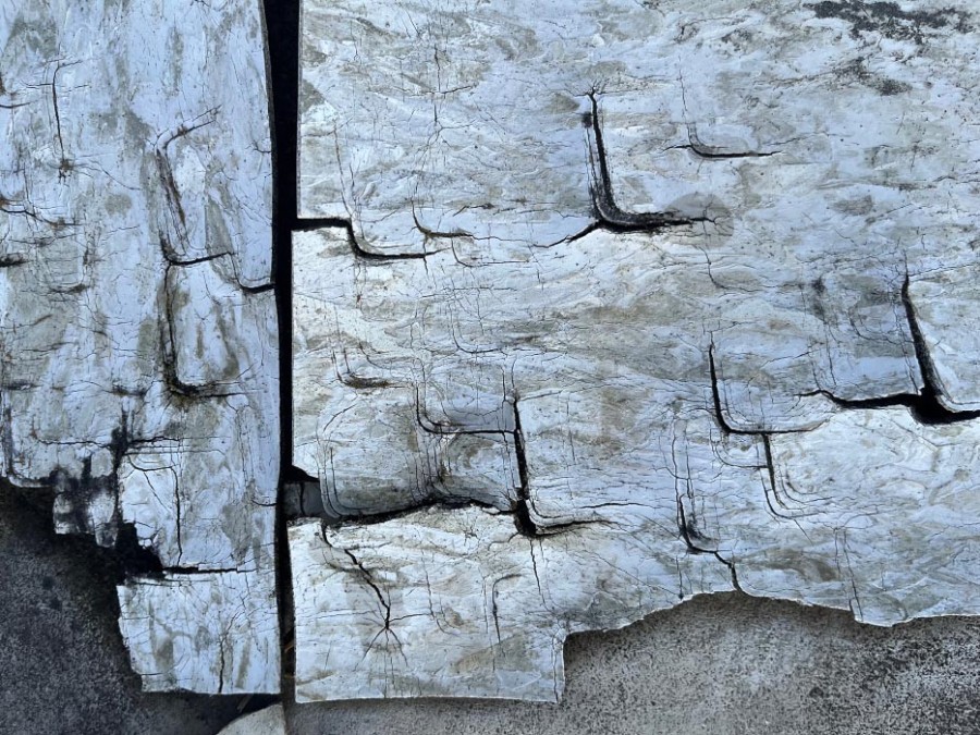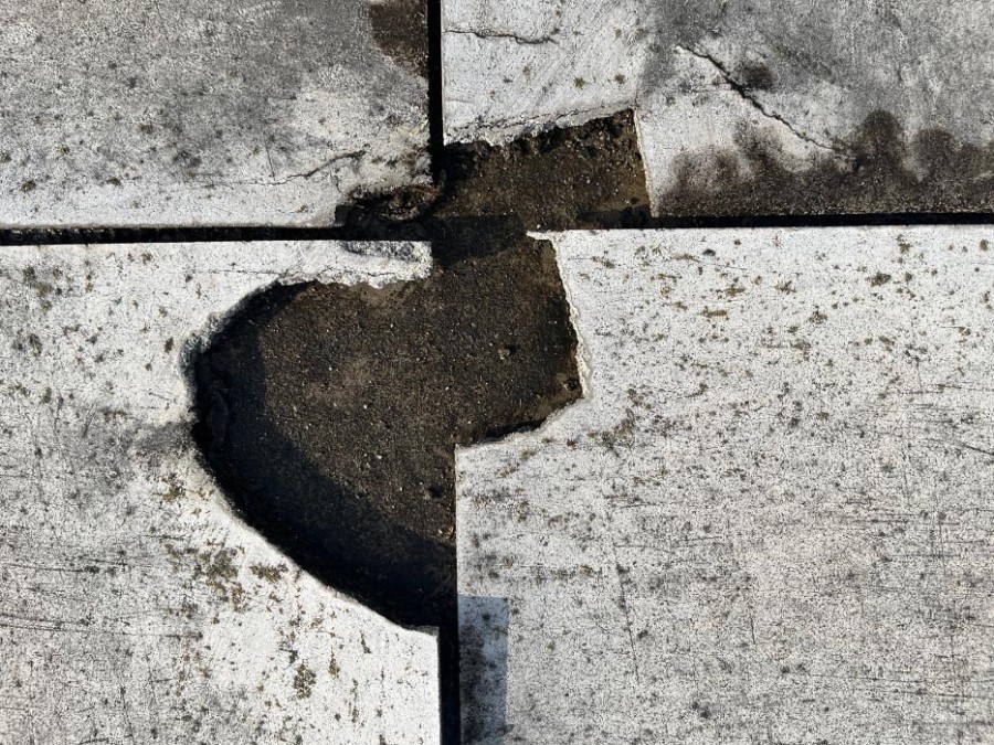 Nothing much seemed to have changed except some additional erosion of the tiles, and I was thinking there may be no need to come back here again - it struck me there's only so much you can do with this, and I already have a ton of shots from previous visits that I have yet to work with. However, since I was there, why not take a few more for the heck of it? This led to a quick walk around with my phone, and this time, instead of capturing the tiles at an angle to simulate 3D landscapes, I did some direct overhead shots reminiscent of aerial shots taken from a plane. The focus becomes more on the 2D compositional aspects of line, texture, and positive vs. negative space.